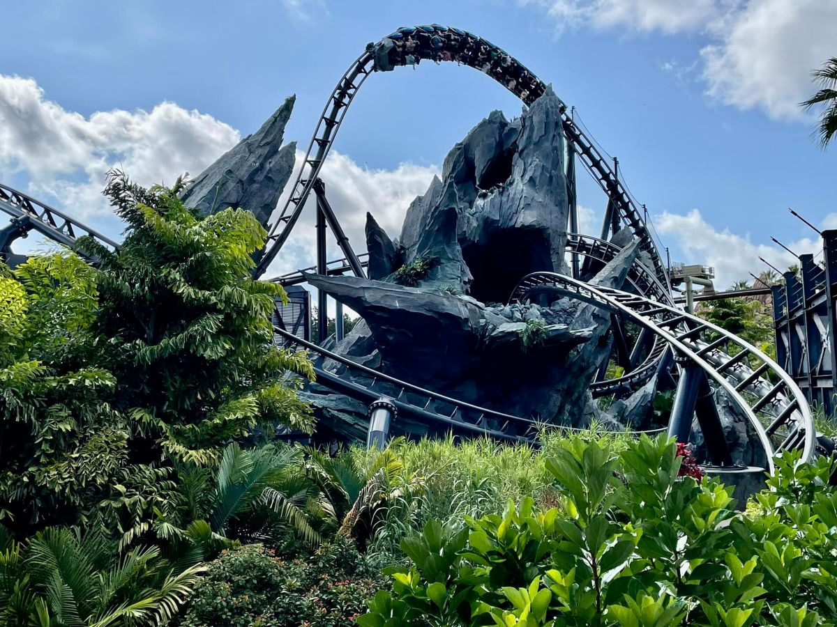 The descent from this height is equally impressive, featuring a 140-foot drop at a steep 80-degree angle. This makes it the tallest and fastest launch coaster in Florida. Beyond its physical stature, the ride is famous for its “Mosasaurus Roll,” a heart-pounding barrel roll taken just inches above the park’s central lagoon.